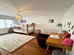 À l'étage, trois chambres vous offrent tout le confort dont vous avez besoin. Que ce soit pour une chambre parentale, des chambres pour les enfants ou même un bureau, chacun y trouvera son espace. Ainsi qu'une salle de bain fonctionnelle et moderne.