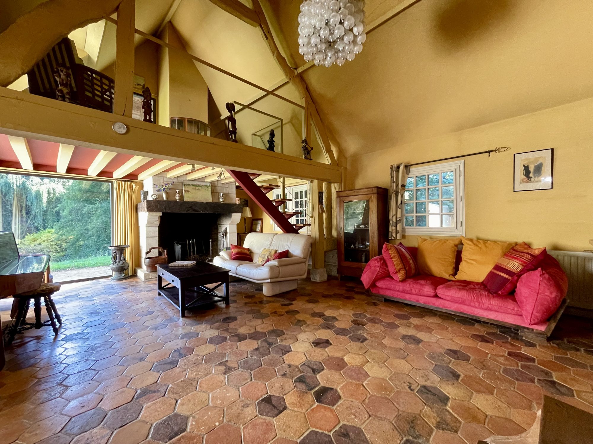 HERMIVAL LES VAUX - Maison en colombage composée : Cuisine aménagée-équipée, un salon ouvert sur séjour avec vue sur le jardin et terrasse, salle de douche, WC séparé, chambre. A l'étage : une suite parentale avec dressing, salle de douche avec WC, deux chambres dont une avec balcon, salle de bains, dressing, WC séparés. En rez de jardin : chambre et cellier. Terrasse en béton. Assainissement récent. Ancien pressoir en colombages à rénover. Sur terrain plat et arboré de 12 359 m². Nous aimons son cahet et ses volumes.