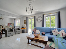 Construite dans les années 80, cette maison parfaitement entretenue offre environ 140 m² habitables. Au rez-de-chaussée, vous serez séduit par un vaste salon-séjour baigné de lumière, avec accès direct à une belle terrasse et à la piscine, idéale pour vos moments de détente. La cuisine indépendante, aménagée et entièrement équipée, dispose d'un coin repas convivial. Une salle d'eau avec douche et baignoire, ainsi qu'un WC séparé complètent ce niveau.