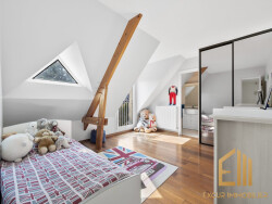Au demi-niveau, vous trouverez une prestigieuse suite parentale, d'une superficie totale de près de 65m², se composant d'un bureau, d'une chambre avec dressing, placard, salle de bains avec double vasque, douche et baignoire et W.C séparés.