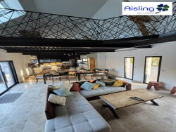 Une pièce de vie spectaculaire Dès l'entrée, laissez-vous charmer par l'architecture épurée et les lignes résolument contemporaines de la maison. Le séjour cathédrale de près de 100 m², baigné de lumière grâce à de vastes baies vitrées, vous offre un espace de vie unique, à la fois chaleureux et lumineux.