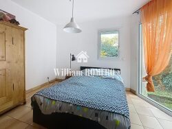 Rez de chaussée : un vaste salon séjour avec sa cheminée (exposition plein sud avec de larges ouvertures), cuisine ouverte aménagée et équipée, 2 chambres, une salle de bain, un WC séparé.
