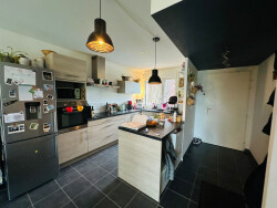Maison idéalement située à La Chapelle-des-Fougeretz Cette maison bénéficie d'un emplacement privilégié, d'un agencement fonctionnel et d'une excellente exposition. À proximité immédiate, un parc agréable permet aux enfants de jouer en toute sécurité. Les amateurs de balades apprécieront l'accès rapide à l'étang du Matelon et à ses chemins de promenade. Pour les déplacements, un arrêt de bus desservant Rennes se trouve à deux pas, ainsi qu'une piste cyclable et la Route du Meuble. Le centre-bourg est également accessible à pied. La maison se compose : d'une entrée, d'un séjour lumineux avec poêle à granulés ouvert sur une cuisine aménagée et équipée US (Près de 36m2) de trois chambres, d'une salle de bains et d'une salle d'eau. Un garage avec place de stationnement ainsi qu'un débarras complètent ce bien. Un cadre de vie agréable où il fait vraiment bon vivre. DPE en cours (C)