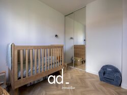 Elle comprend une entrée, une pièce de vie de 33m² avec cuisine ouverte, trois chambres avec placard, une salle d'eau ainsi qu'un WC séparé, un espace bureau en mezzanine.