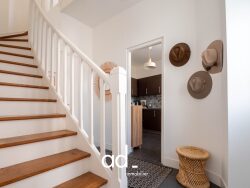 Répartie sur deux niveaux, elle séduit dès l'entrée par sa belle luminosité et ses volumes généreux, le séjour, baigné de lumière grâce à ses deux grandes fenêtres et sa belle hauteur sous plafond, crée une atmosphère chaleureuse et accueillante. La cuisine, entièrement équipée, s'intègre parfaitement à l'espace de vie. Un WC indépendant complète le rez-de-chaussée. À l'étage, vous découvrirez 2 chambres : - une première chambre spacieuse avec douche intégrée et grands placards, - une seconde chambre, idéale en chambre d'enfant, bureau ou chambre d'amis. Une salle d'eau indépendante avec WC vient compléter l'étage, apportant confort et fonctionnalité.