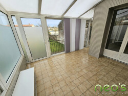 - Au rez-de-chaussée: entrée, garage avec un accès sur le jardin, buanderie et cave. - A l'étage: palier, séjour, cuisine aménagée, véranda, 2 chambres, salle d'eau et WC. - Au 2ème étage: palier desservant 2 chambres. Jardin.