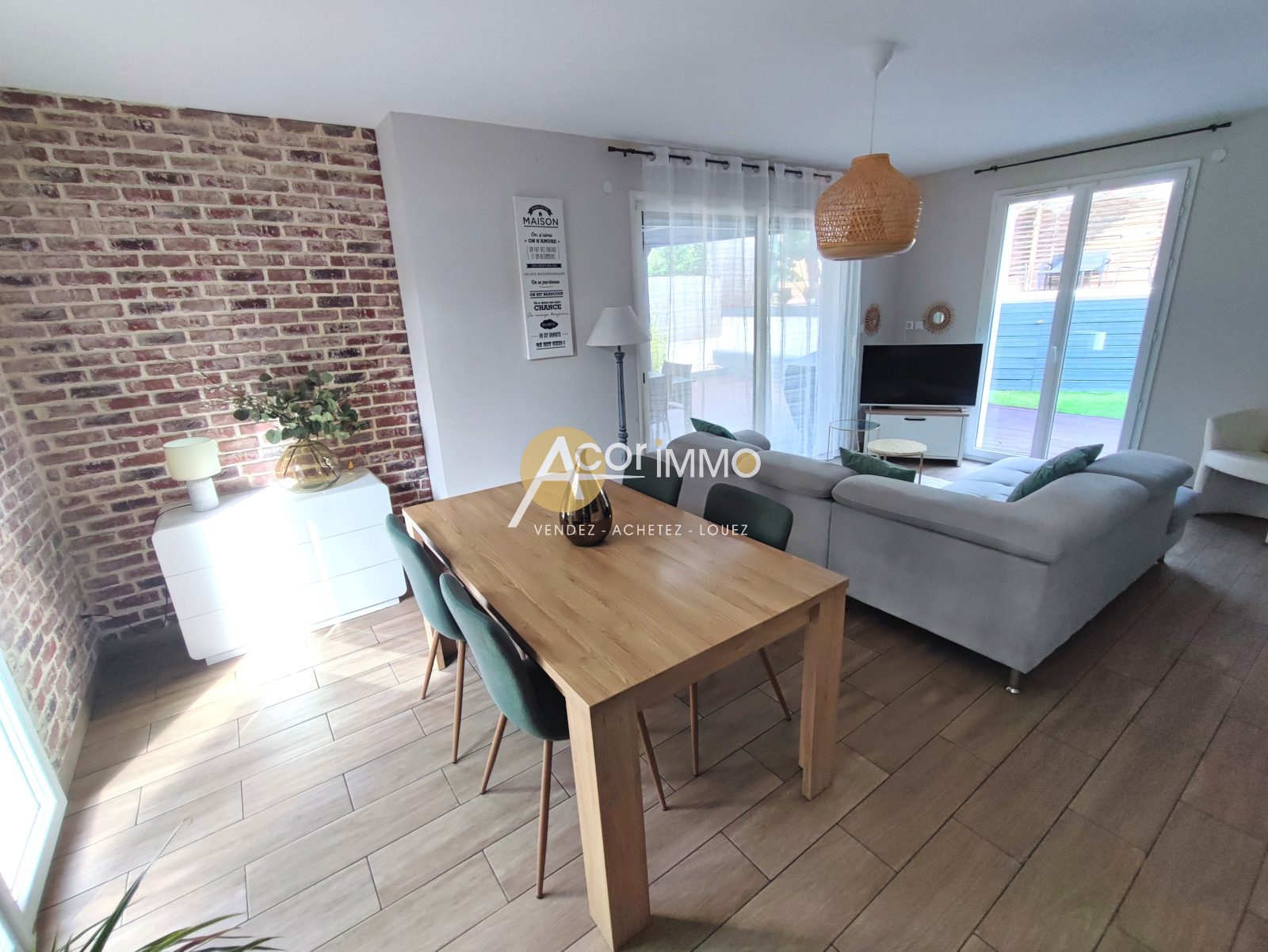 Au rez-de-chaussée, un hall d'entrée dessert un séjour lumineux ouvert sur le jardin, ainsi qu'une cuisine fonctionnelle.À l'étage, un dégagement mène à trois chambres confortables, une salle d'eau et un WC séparé, offrant un espace nuit parfaitement distinct. Côté extérieur, vous profiterez d'un jardin de 200 m² pour vos repas d'été, vos moments de détente ou vos projets d'aménagement paysager. Le garage, actuellement aménagé avec rangements, point d'eau et WC, constitue un véritable espace pratique et modulable.
