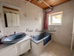 Vous trouverez également une salle de bain, un WC séparé, une remise, ainsi qu'un très grand garage de 80 m², une chaufferie et une buanderie.