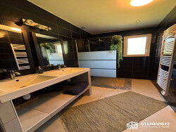 Au rez-de-chaussée, un spacieux séjour de 42 m² vous accueille avec ses grandes baies vitrées, inondant l'espace de lumière naturelle. Imaginez-vous organiser des dîners entre amis, des soirées ciné ou des moments de détente en famille dans ce cadre chaleureux et convivial.