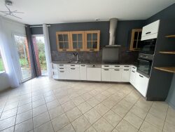 Très bel emplacement, dans le centre de Languidic, pour cette maison d'architecte, située sur un terrain entièrement clos, avec portail et visiophone, sans vis-à-vis. Elle se compose au rez-de-chaussée d'une entrée, d'un grand salon-séjour donnant directement sur un beau jardin paysager, d'un grand bureau, d'une cuisine aménagée et équipée, d'une arrière cuisine avec coin buanderie et d'un W.C. Au 1er étage un palier, quatre chambres dont une suite parentale avec salle de bains privative, une salle de bains, un W.C, un dégagement avec accès grenier et salle d'eau. Au 2ème étage un bureau, une chambre et un grenier. Garage, chalet de jardin en bois. Cave en sous-sol. Chauffage pompe à chaleur en plus d'une cheminée insert, tout à l'égout, fenêtres aluminium.