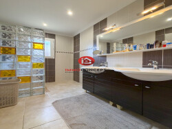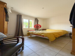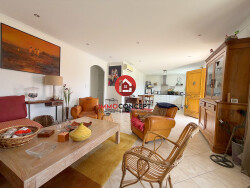 Hors lotissement, en impasse, villa de plain pied d'environ 81m² composée d'une pièce de vie avec cuisine ouverte équipée, trois chambres, salle d'eau, toilettes. Terrasse couverte au sud, garage de 27m². Terrain clos de 450m². Villa récente, chauffage par climatisation réversible.