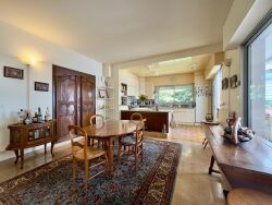 Édifiée dans un écrin de verdure de 1 800 m², elle séduit par ses volumes généreux et ses prestations rares. On y retrouve un vaste séjour lumineux bénéficiant d'une triple exposition, avec cheminée et véranda chauffée, une suite parentale, quatre chambres avec balcons et vue sur l'océan, ainsi qu'une piscine 10 x 4 m. La propriété dispose également d'un garage double avec accès direct par ascenseur, de trois stationnements extérieurs sécurisés et d'un puits artésien, véritable atout écologique pour l'entretien du parc.
