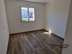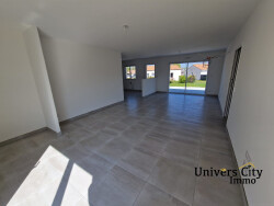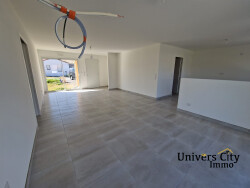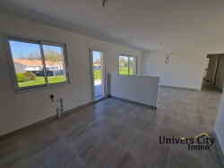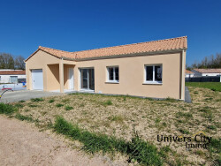 Maison de plain-pied de 2023 comprenant un salon/séjour/cuisine de 49m2, un cellier, une salle de bains, un wc, un dégagement et trois chambres avec placard. Le tout sur un terrain arboré de 544 m2 avec une terrasse et un garage attenant à la maison.