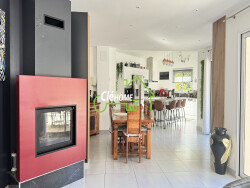 A Lentilly À proximité du centre du village et de la gare, découvrez cette magnifique maison moderne de 176 m² habitables, construite en 2012, offrant des prestations haut de gamme et un confort de vie remarquable. La vaste pièce de vie, baignée de lumière, s'ouvre sur une terrasse plein sud équipée d'un grand store banne, prolongée par un jardin paysager avec piscine et pool house, véritable havre de paix, de plain-pied trois chambres, une grande salle de bains avec baignoire et douche, ainsi qu'une buanderie et un Wc. À l'étage, vous trouverez deux chambres supplémentaires, un bureau, une salle d'eau. La propriété dispose d'un grand garage, ainsi qu'un atelier indépendant, et un grenier aménagé. La maison bénéficie d'une domotique intégrale assurant un confort optimal au quotidien. Équipée d'une pompe à chaleur avec plancher chauffant et rafraîchissant, cette maison allie performance énergétique, élégance et qualité de vie. Le terrain de 1000 m² est plat clos et arboré, sans vis à vis et dispose d'une piscine de 9,5X4 m² avec une bâche à barres chauffante et motorisée. A visiter rapidement
