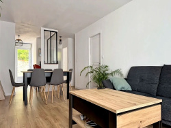 Exclusivité , au calme dans le quartier des Nouettes , commerces à 500 m env., Plage à 2,5 km env. Maison T4 de plain pied Non mitoyenne, 101 m² habitables env. comprenant, hall d'entrée séjour salon de 28 m² orienté ouest avec cheminée, cuisine séparée avec cellier attenant, vaste dégagement, 3 chambres dont deux avec placard, pièce bureau/débarras, salle d'eau récente, wc séparé, ouvrants PV double vitrages récents avec volets électriques, chaudière gaz neuve 2025, jardin plein sud sans vis à vis, petit garage, travaux de renovation à prévoir,