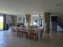 L'agence HOMMI vous propose à seulement 2,5 km du bourg de Ligné, en campagne sur la commune de Mouzeil, de découvrir cette charmante maison entièrement rénovée en 2006, implantée sur une belle parcelle de 2 325 m² offrant une agréable vue dégagée sur la campagne. Cette maison séduit par ses volumes généreux et sa luminosité. Vous profiterez d'une vaste pièce de vie baignée de lumière grâce à ses larges ouvertures et sa hauteur sous plafond. Un poêle à bois vient parfaire l'ambiance chaleureuse de cet espace convivial, idéal pour la vie de famille et les moments de réception. La cuisine, aménagée et fonctionnelle, s'intègre harmonieusement à l'ensemble. La maison propose 4 chambres, dont une au rez-de-chaussée avec espace dressing. Vous disposerez également d'une spacieuse salle de bains, d'une salle d'eau supplémentaire, offrant confort et praticité au quotidien. Une grange attenante ainsi qu'une cave complètent le bien, offrant de nombreuses possibilités de stockage ou d'aménagement selon vos besoins. Prestations complémentaires : Chauffage par géothermie, portail électrique, prise dédiée pour véhicule électrique. Une maison familiale aux beaux volumes, alliant charme de l'ancien et confort moderne, à seulement quelques minutes des commodités. Pour renseignements et visites contactez Elodie RENAULT (EI) au 06 83 22 76 20, agent commercial immatriculé au RSAC de Nantes sous le numéro 842 652 836.