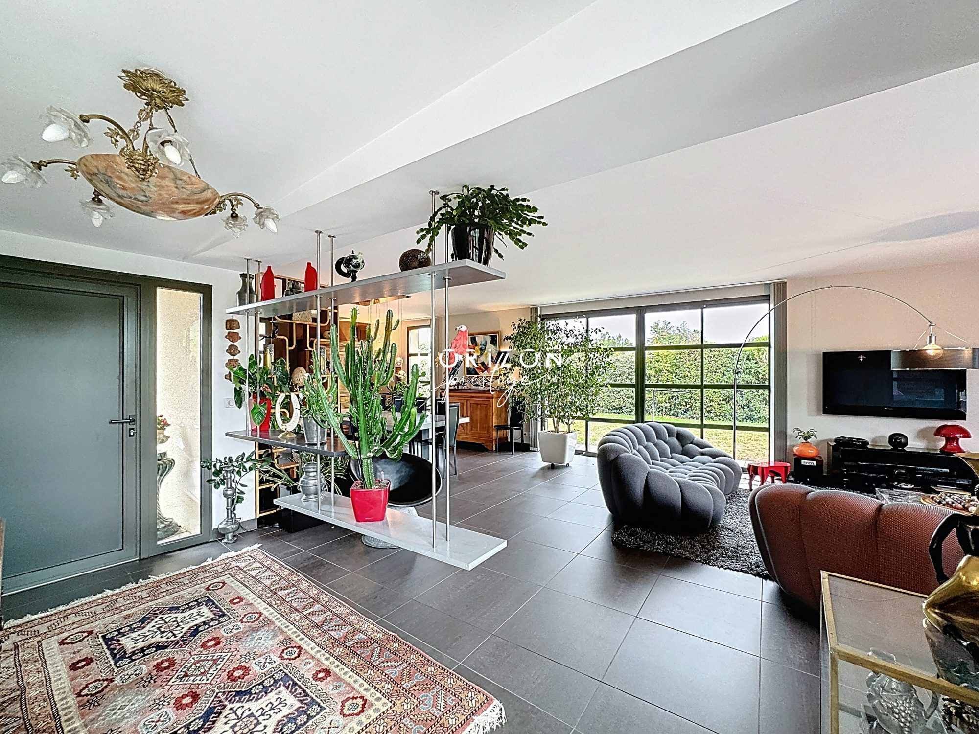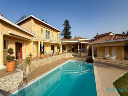 Située sur la commune de Limonest, sur un magnifique terrain de 3200 m² au calme absolu, vaste maison de 280 m² + dépendances 180 m². Dés l'entrée le charme opère en empruntant la longue allée qui conduit à une plateforme de stationnement entièrement pavée. L'environnement est très résidentiel et discret.
