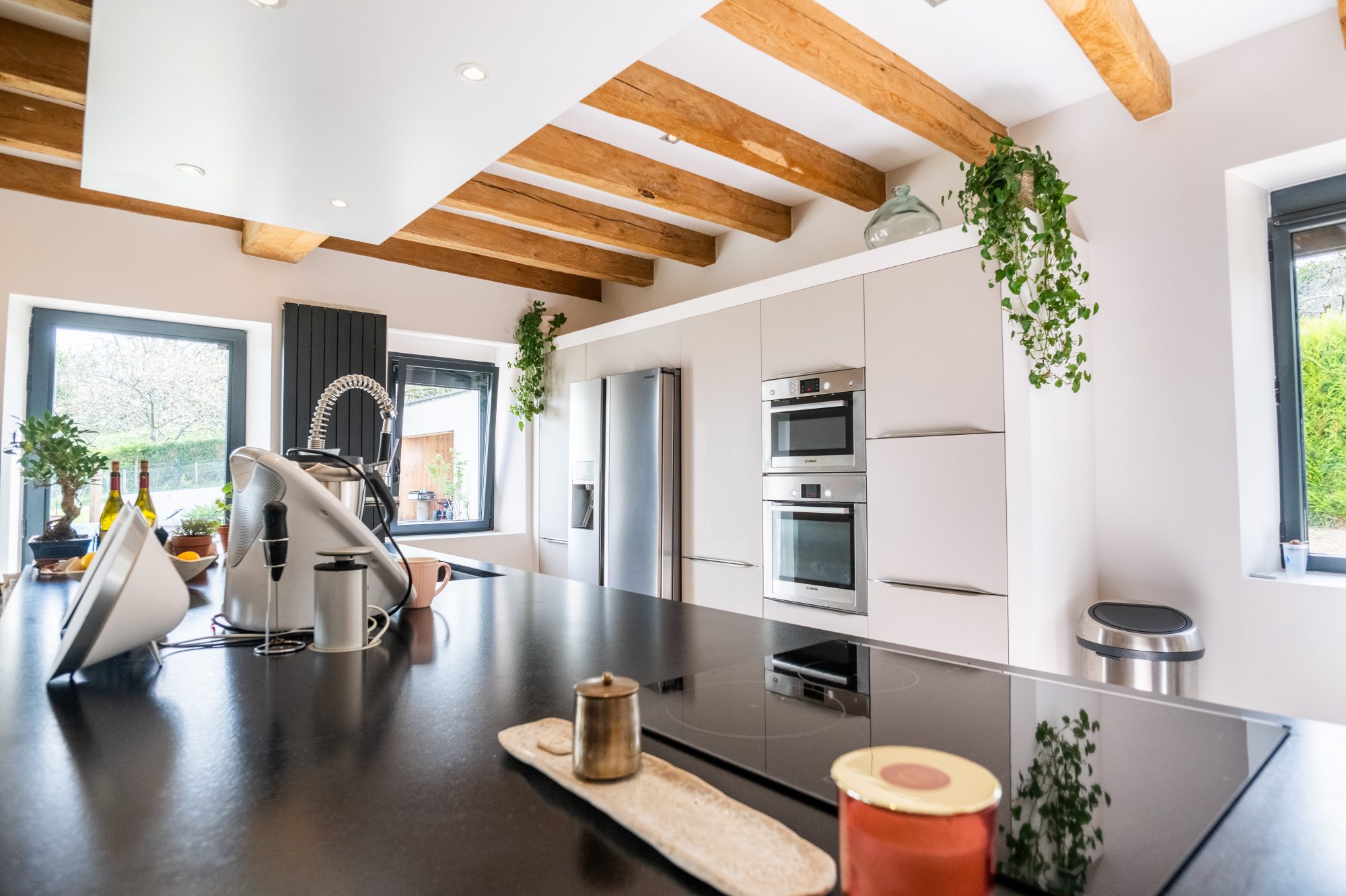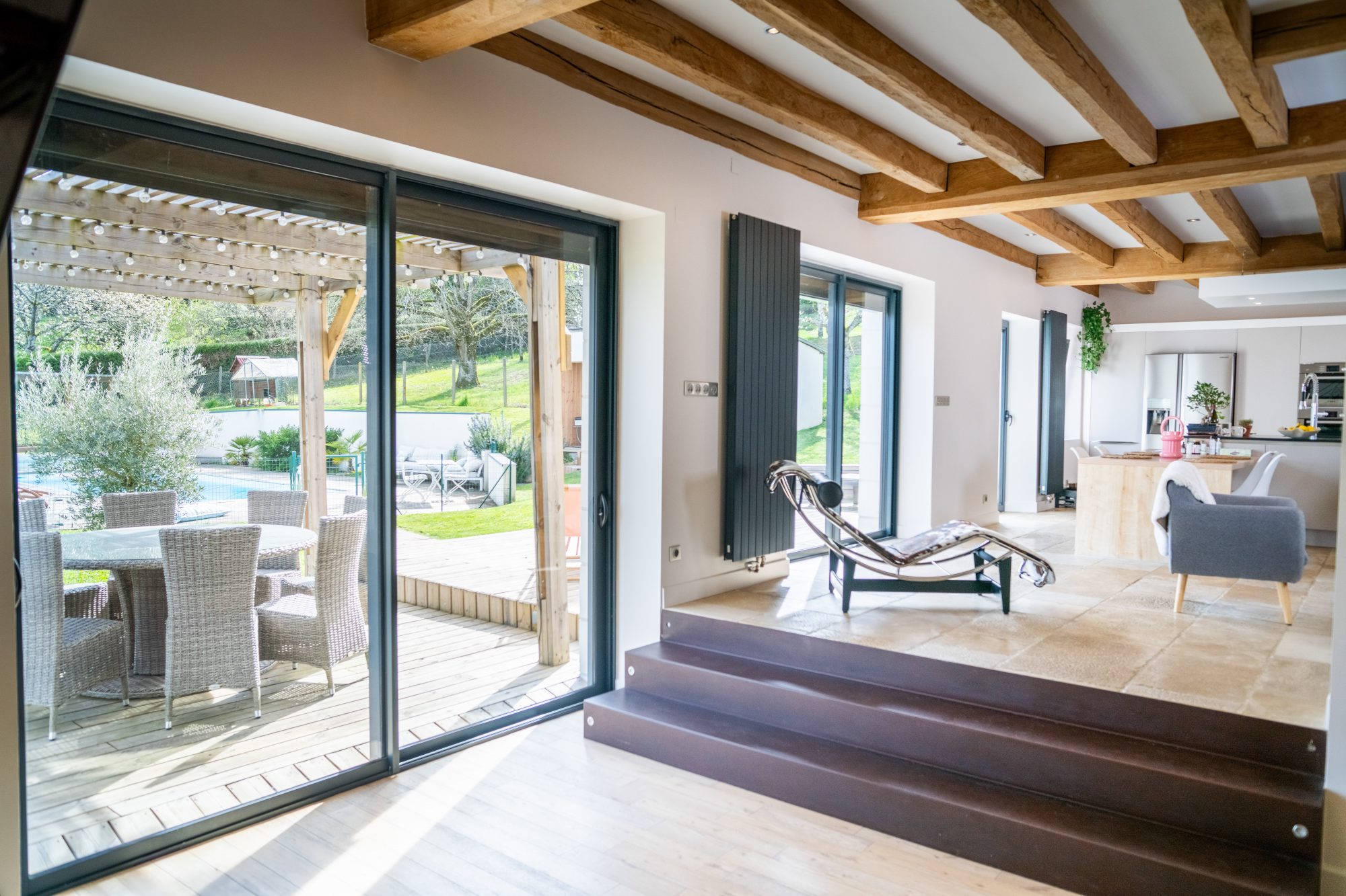 La partie privative et les chambres d'hôtes bénéficient chacune d'un accès distinct, et sont reliées à l'étage par une galerie.