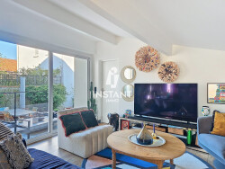 La terrasse, véritable écrin à ciel ouvert de 30 m², associe des matériaux nobles tels que la pierre de Bali et des finitions effet bois, et s'intègre parfaitement à un jardin paysager, à l'abri des regards. Un espace de stationnement permet d'accueillir deux véhicules avec aisance.