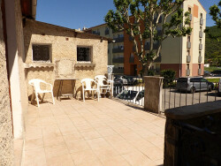 Charmante maison mitoyenne, traversante de 90m² sur 2 niveaux d'habitation, située au coeur d'un village typique dans une région ensoleillée et touristique. L'environnement est calme.