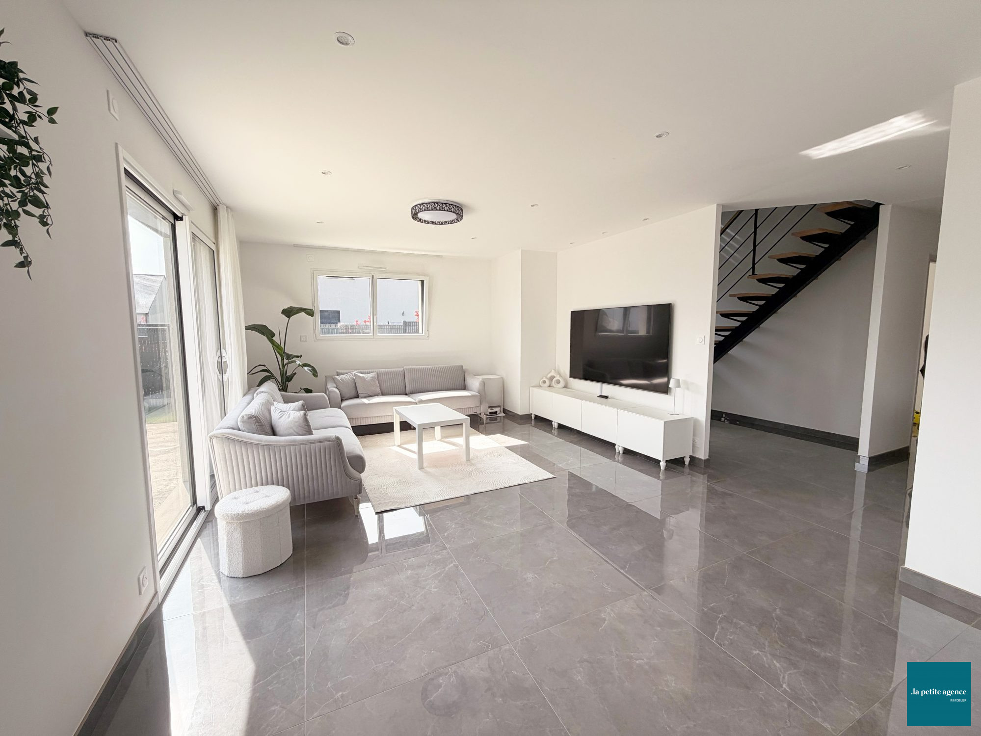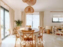 Esthétiquement, la maison séduit par son design épuré et contemporain. Les grandes baies vitrées de la pièce de vie, d'environ 50 m², offrent une luminosité naturelle exceptionnelle et une belle ouverture sur l'extérieur. Les volumes et les lignes sobres créent une atmosphère chaleureuse et conviviale.