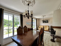 Elle comprend de plain pied : un salon/séjour avec cheminée ouvrant sur terrasse, une cuisine aménagée, deux chambres, une salle d'eau, un wc et un dégagement. Un garage attenant avec véranda, un deuxième garage indépendant de près de 40m2 et plusieurs dépendances annexes complètent ce bien.