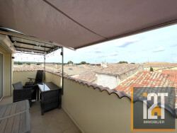 À l'extérieur, profitez d'une agréable terrasse de 10 m² avec vue dégagée sur les toit de Marguerittes, idéale pour vos moments de détente.