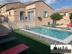 NOUVEAU MARTIGUES, SECTEUR JULIEN OLIVE, L'agence Margueron Immobilier vous présente à la vente, une belle villa individuelle demi étage type 4 de 100m2 habitables avec deux terrasses, garage de 45 m2 environ ainsi qu'une pièce supplémentaire d'environ 15 m² pouvant servir de cuisine d'été et piscine sur une parcelle de 377 m2. Elle se compose d'une entrée avec placard, un salon/séjour spacieux et lumineux avec cuisine ouverte aménagée et équipée donnant sur une terrasse plein sud et un wc indépendant. Côté nuit vous y trouverez trois chambres dont deux avec placards, une salle d'eau avec douche italienne et un wc. Ses atouts : Un grand garage (possibilité de créer un logement). Menuiseries PVC/Double vitrage, volets ALU, climatisations réversibles, fibre, vide sanitaire, piscine, pièce pouvant servir de cuisine d'été avec volet roulant, deux places de stationnements. À 2 min des écoles (crèche, maternelle, primaire). A proximité des axes autoroutiers, CHU, zone commerce. AUCUN TRAVAUX À PRÉVOIR ! Pour plus de renseignements, contactez Elisabeth DURAND au 06.64.67.60.00
