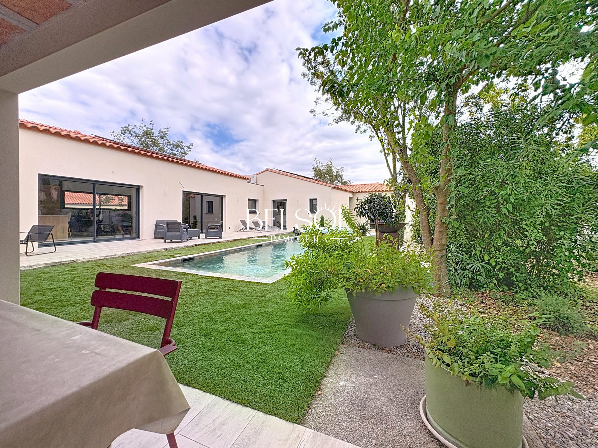 Propriété sur quatre faces avec vue exceptionnelle sur le Canigou Découvrez cette maison de 310 m² habitables, à proximité des commodités, des plages, de Perpignan et de l'Espagne. Implantée sur un terrain de 1 434 m², cette demeure spacieuse et lumineuse offre des prestations haut de gamme. Elle se compose de cinq chambres, dont une suite parentale, parfaites pour accueillir famille et amis dans un confort absolu. À l'extérieur, vous profiterez d'un véritable espace de détente avec une piscine chauffée et couverte, un jacuzzi, ainsi que de vastes terrasses pour savourer pleinement le climat méditerranéen et la vue imprenable sur le Canigou. Un garage et une cave complète ce bien, alliant praticité et sécurité. Un bien rare, idéal pour une résidence principale, secondaire ou un projet d'accueil touristique. À visiter sans tarder !