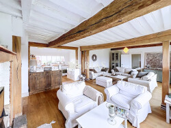 - Grande pièce de vie de 40 m² avec cheminée, chaleureuse et lumineuse - Cuisine ouverte de 9 m² - Salle à manger de 21 m², parfaite pour recevoir