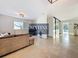 Concernant l'intérieur, le rez de chaussée en travertin lui aussi, se compose d'une très belle pièce à vivre de 65 m2, lumineuse grâce à la baie vitrée donnant sur la terrasse. La cuisine ouverte sur cet espace repas constitue un véritable atout pour des familles nombreuses ou souhaitant recevoir. Deux chambres avec placard sont disponibles à ce niveau ainsi qu'une salle de bain et un WC indépendant.