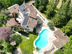 Au coeur d'un havre de paix, magnifique maison lumineuse sur 2 niveaux, contemporaine en auto consommation électrique, comprenant : au r.d.c une entrée, un séjour, un salon, une cuisine indépendante équipée, une terrasse d'hiver, 3 w.c, une suite parentale avec dressing et douche à l'italienne, double vasques. Au premier étage grandes 4 chambres avec dressing, 2 salles de bain, 2 w.c, une terrasse. Un garage, une cave, une salle de réception en sous-sol. Une grande piscine au chlore.