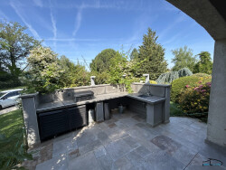 Imaginez-vous dans une maison traditionnelle, construite en 1999, où chaque détail a été pensé pour offrir un cadre de vie exceptionnel. Avec une surface habitable de 172 m², cette demeure de plain-pied vous accueille dans un environnement spacieux et lumineux. Le séjour, d'une superficie impressionnante de 65 m², est le coeur battant de cette maison. C'est l'endroit idéal pour recevoir vos proches et créer des souvenirs inoubliables. Les cinq chambres, dont une suite parentale, offrent un espace de repos confortable et intime, parfait pour chaque membre de la famille. La cuisine américaine, aménagée et équipée, est un véritable atout pour les amateurs de cuisine. Elle s'ouvre sur le séjour, permettant une convivialité optimale. Vous pourrez préparer vos repas préférés tout en discutant avec vos invités. Le jardin, d'une superficie de 4828 m², est un véritable havre de paix. Imaginez-vous, par une belle journée ensoleillée, profitant de votre espace vert, idéal pour les barbecues entre amis ou les moments de détente en famille. Les enfants pourront y jouer en toute sécurité, tandis que vous pourrez vous détendre sous un arbre ou sur une chaise longue. Cette maison, en excellent état, dispose également d'un sous-sol, offrant des possibilités de rangement ou d'aménagement supplémentaires. La toiture en tuiles garantit une durabilité et une esthétique intemporelle. Les deux salles d'eau et les deux WC, répartis stratégiquement, assurent un confort quotidien optimal. La salle de bains principale, spacieuse et élégante, est un véritable espace de bien-être. À seulement 5 minutes à pied, vous trouverez plusieurs commodités pratiques, telles qu'un arrêt de bus, permettant des déplacements aisés. En voiture, en 5 minutes, vous aurez accès à une maternelle, une école élémentaire, une alimentation générale et un restaurant, facilitant ainsi votre quotidien. Plusieurs hôpitaux et médecins généralistes sont également à proximité, garantissant une tranquillité d'esprit en cas de besoin. Ne manquez pas cette opportunité unique de vivre dans une maison traditionnelle, alliant charme et modernité. Contactez-nous dès aujourd'hui pour organiser une visite et découvrir par vous-même tout le potentiel de cette magnifique propriété.