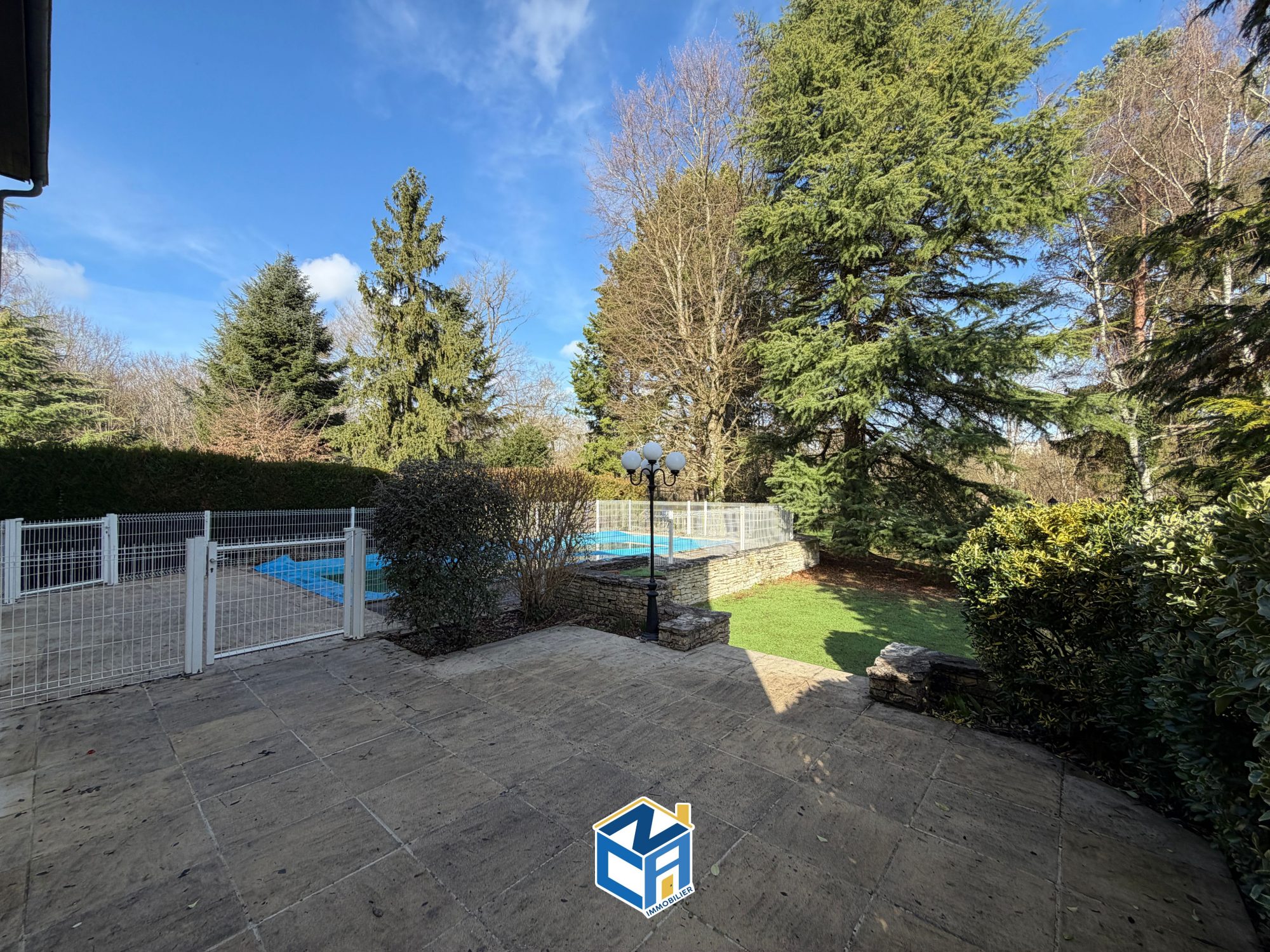 L'ensemble est implanté sur un magnifique terrain arboré de 2 112 m², au style parc, parfaitement propice à la détente. Le jardin accueille une piscine de 4 x 9 mètres, entièrement clôturée, ainsi que deux terrasses, idéales pour profiter des extérieurs à différents moments de la journée.