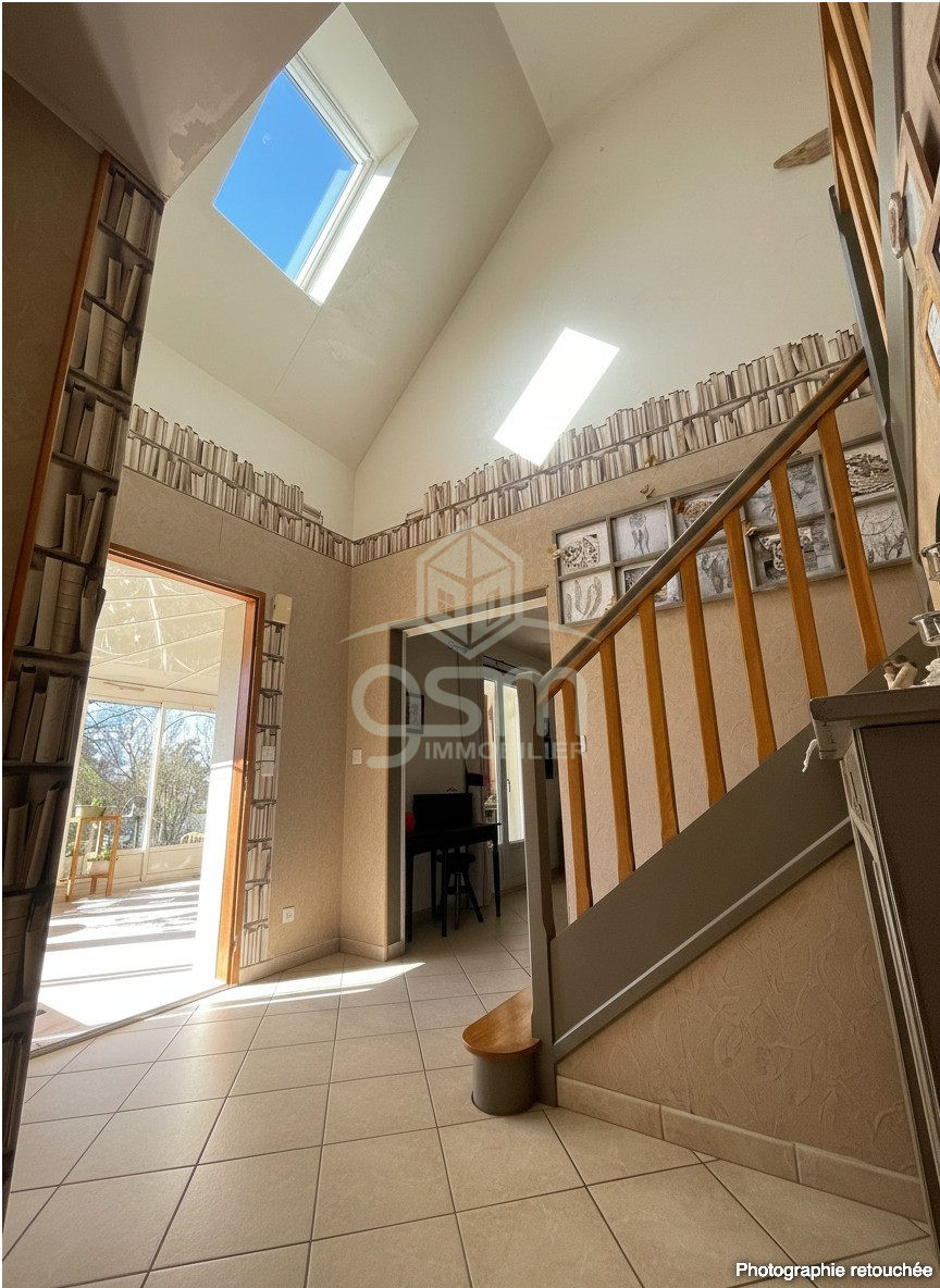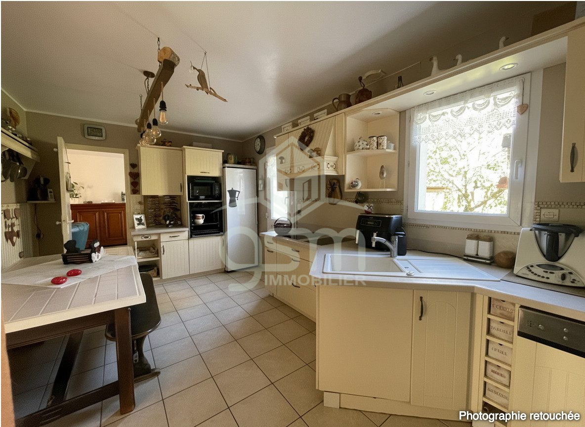 Dès l'entrée, vous serez séduit par un séjour de plus de 50 m², baigné de lumière, agrémenté d'une cheminée, idéal pour des moments conviviaux en famille ou entre amis. La cuisine indépendante, aménagée et équipée, offre un espace fonctionnel et confortable, complété par une buanderie, très appréciable au quotidien.