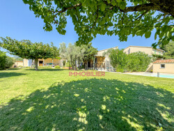 Ravissante villa de plain pied à la sortie de Monteux dans un chemin privatif ou se situe quatre maisons pour ne pas être isolée. Elle se situe à proximité du centre ville et de la gare et de la voie rapide avec ses facilités sans les contraintes. Elle présente une surface de presque 150m² sur une parcelle de 1301m² avec une très belle piscine 10x5 au sel protégée par son volet et chauffée par une pompe à chaleur. Un espace de vie de 58m² avec la cuisine ouverte sur le salon séjour avec une cheminée ouverte et une belle impression par sa hauteur de plafond rampant à plus de 4,50m. Elle offre quatre belles chambres dont une suite parentale avec sa salle d'eau et son wc, en plus une seconde salle d'eau , un wc indépendant et dans la buanderie à nouveau une salle d'eau. Un garage de plus de 33m² avec sa mezzanine, l'eau chaude par un ballon, un adoucisseur. Un chauffage par climatisation gainable dans les chambres et par cassettes dans la pièce de vie. Le jardin offre une belle pelouse avec arrosage automatique par le canal de Carpentras, et magnifiquement éclairé. On retrouve un bureau indépendant de 12m² pour votre activité votre intimité qui se trouve dos à l'abri voiture qui couvre 38m² pour trois voitures. Une très belle terrasse ombragée et carrelée avec une exposition lumineuse plein sud. Volets bois en parfait état , double vitrage pvc et moustiquaire et châssis alu sur les baies. La maison est dans un état d'entretien irréprochable et peut se vendre si entente entièrement meublée pour une valorisation en supplément du prix de vente. Classe énergie C (149) et GES A (4) Les risques auxquels ce bien est exposé sont consultable sur www.georisques.gouv.fr Le prix de ce bien comprenant les honoraires à la charge du vendeur est de 577 500. Contactez l'agence au 04.90.61.13.80