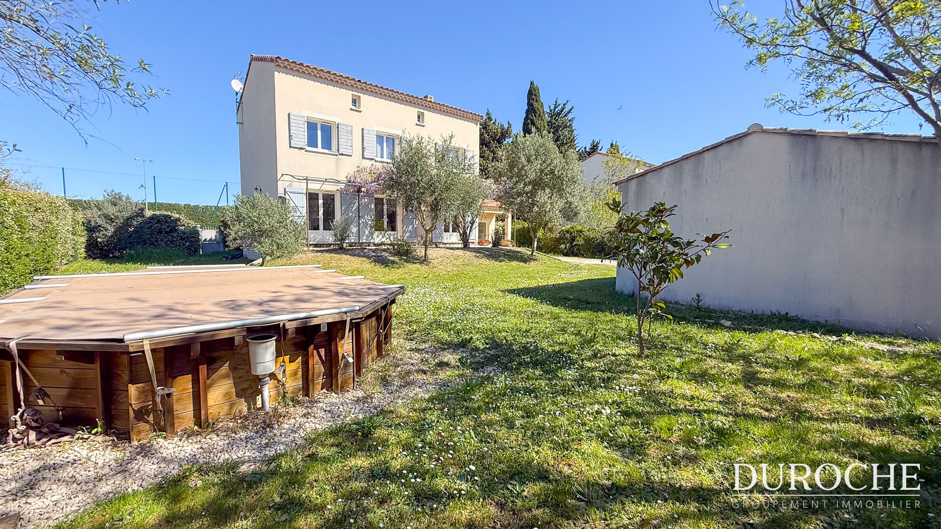 L'extérieur entièrement clos est agréablement aménagé avec une piscine récente, une belle terrasse de 40m² et des arbres fruitiers.