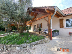 Murs et Gélignieux Exceptionnel et rare à deux pas du Rhône et des activités aquatiques, cette propriété de plain-pied avec dépendance vous séduira par ses volumes généreux, son confort et son environnement privilégié. La maison principale s'ouvre sur un vaste salon-séjour lumineux de 34 m² environ, idéal pour recevoir en toute convivialité. La cuisine indépendante, entièrement équipée offre un espace fonctionnel. L'espace nuit comprend une grande chambre parentale de 19 m², trois autres chambres confortables, une salle de bain avec douche, ainsi qu'une buanderie discrète. À l'extérieur, une grande terrasse couverte prolonge les espaces de vie vers un jardin arboré et clos d'environ 1 500 m², parfaitement entretenu, avec une piscine hors sol pour profiter pleinement des beaux jours. Une dépendance de 50 m² vient enrichir ce bien d'exception. Elle se compose d'une belle pièce de vie avec cuisine aménagée et d'une salle d'eau, offrant de nombreuses possibilités : logement d'appoint, espace professionnel, ou location saisonnière.Un bien rare sur le secteur, mêlant espace, qualité de vie et prestations, à découvrir sans attendre.Mentions légales: les honoraires sont à la charge du vendeur, notre barème est consultable sur notre site Parlez moi d'immo. Les informations sur les risques auxquels ce bien est exposé sont disponibles sur le site Géorisque http://www.georisques.gouv.fr/, les diagnostics ont été réalisés le 7/10/2024, DPE: Classé C GES: Classé C, Montant estimé des dépenses annuelles d'énergie pour un usage standard entre 1470 et 2080 . Prix moyens des énergies indexés (abonnement compris) à la date du 01/01/2021, le bien n'est pas soumis au régime de copropriété. Pour toutes informations complémentaires Parlez-Moi d'Immo Lyon vous propose de contacter Armanda COSTA votre conseillère immobilier Indépendante (R.S.A.C. de Chambéry N° 37795478900022) spécialisée sur le secteur de Murs et Gélignieux au O6 26 86 12 1O