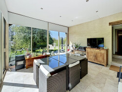 De plain pied vous y découvrirez, un joli séjour, une cuisine aménagée et équipée, un salon panoramique avec vue sur la nature, une salle de douche, un wc, un grand dressing de 16m2, une buanderie et enfin trois chambres dont une parentale avec salle de douche et accès extérieur, idéal pour un projet gites ou chambre d'hôtes.