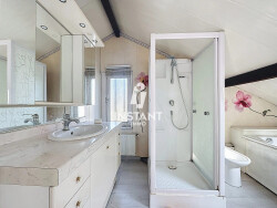 À l'étage, UNE CHAMBRE avec rangements et une salle de bains.
