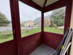Au RDC : une entrée donnant sur un séjour, une pièce de rangement, trois chambres, un couloir desservant une salle de bains avec douche et wc, deux débarras, un dressing, une cuisine équipée et aménagée donnant accès à une petite véranda.