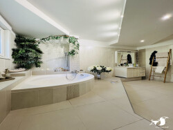 - RDC : Belle entrée cathédrale, séjour spacieux, cuisine dinatoire avec vue sur la parc, trois grandes chambres avec dressings, deux salles de bains, deux wc, un bureau, une buanderie, espace spa et local technique.
