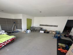 L'intérieur est composé au RDC : D'un appartement de type T2 avec une pièce a vivre de 17m2, d'une chambre de 15m2 et d'une salle d'eau, et dun cours de 15m2. D'un local commercial de 50m2 séparé en 2 espaces ( accueil et espace de travail). D'un garage de 26m2. À L'étage, on y trouve un appartement de type T4 de 108m2 avec une pièce de vie de plus de 30m2, de 3 chambres de plus de 12m2 ainsi quune salle de bain de 12m2 ainsi qu'une terrasse de 36m2.