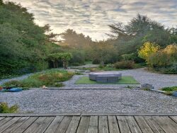 À l'arrière, une terrasse en bois vous invite à profiter d'un cadre exceptionnel, un grand jardin verdoyant agrémenté d'arbres fruitiers.
