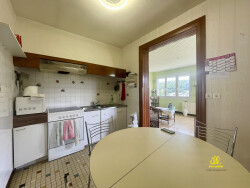 Au RDC : d'une entrée avec placards de rangement, d'une belle salle à manger très lumineuse, d'une cuisine, d'un salon avec vue dégagée, d'un couloir avec placards de rangement desservant deux belles chambres dont une avec une pièce attenante pouvant servir de dressing, d'une salle de bains avec baignoire et d'un WC indépendant.