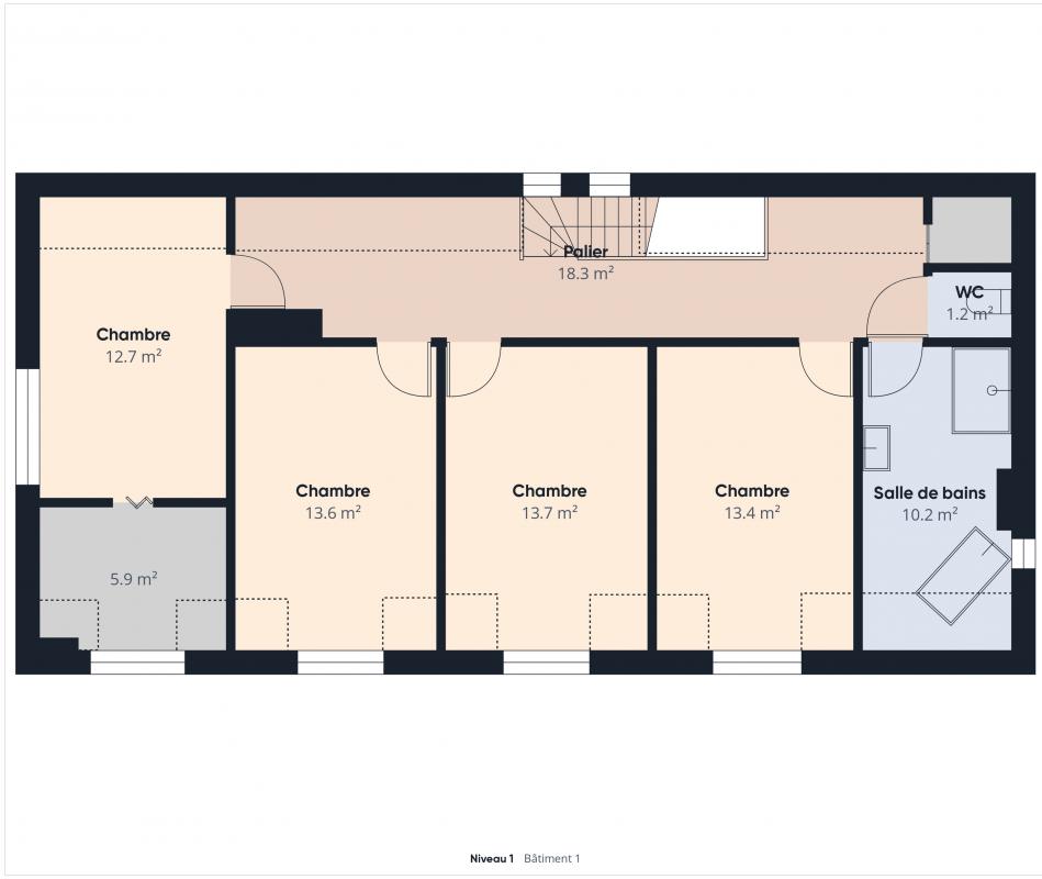 En campagne prisée d'Orchies, maison individuelle bourgeoise avec de beaux volumes et du cachet proposant : - au rez-de-chaussée : un séjour de 57,4m², une cuisine, une chambre, une buanderie avec douche, une pièce pouvant être aménagée en salle de bains pour réaliser un semi plain-pied, un hall d'entrée, un WC indépendant. - au premier étage : 3 belles chambres, une salle de bains avec baignoire, douche et WC - au deuxième étage, une grande chambre avec salle d'eau et dressing