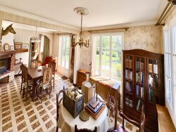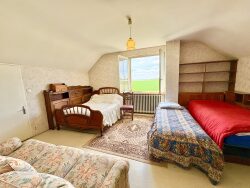 Cette maison traditionnelle est faite pour accueillir une famille besoin d'espace. Au rez-de-chaussée se trouve : une entrée, une cuisine aménagée, un salon-séjour lumineux donnant sur une terrasse extérieure plein sud, une chambre, une salle d'eau et un wc indépendant. A l'étage : un palier desservant trois chambres, un wc avec point d'eau. Sous-sol total avec : garage, chaufferie, buanderie, cellier, cave. Les fenêtres sont en pvc double vitrage (sauf deux à l'étage). Le chauffage fonctionne avec une chaudière fioul.