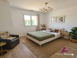 Le bien : Terrain issu d'une division cadastrale d'environ 400 m², piscinable Pièce de vie lumineuse de 37 m² avec cuisine équipée ouverte Cellier attenant pratique pour le rangement 3 chambres avec placards intégrés Salle d'eau moderne WC séparés Chauffage réversible gainable par pompe à chaleur pour un confort optimal toute l'année