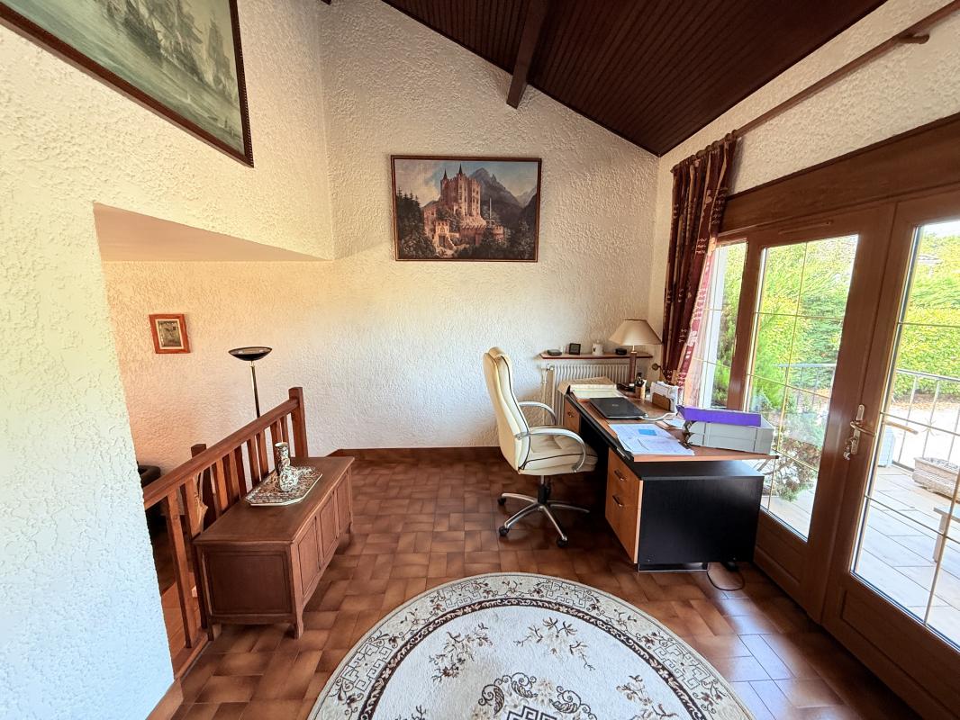A l'étage vous retrouverez, 3 chambres de 10 m2 chacune, une salle d'eau avec WC, ainsi qu'une suite parentale de 13m2 avec dressing et balcon accompagnée de sa salle de bain avec WC.