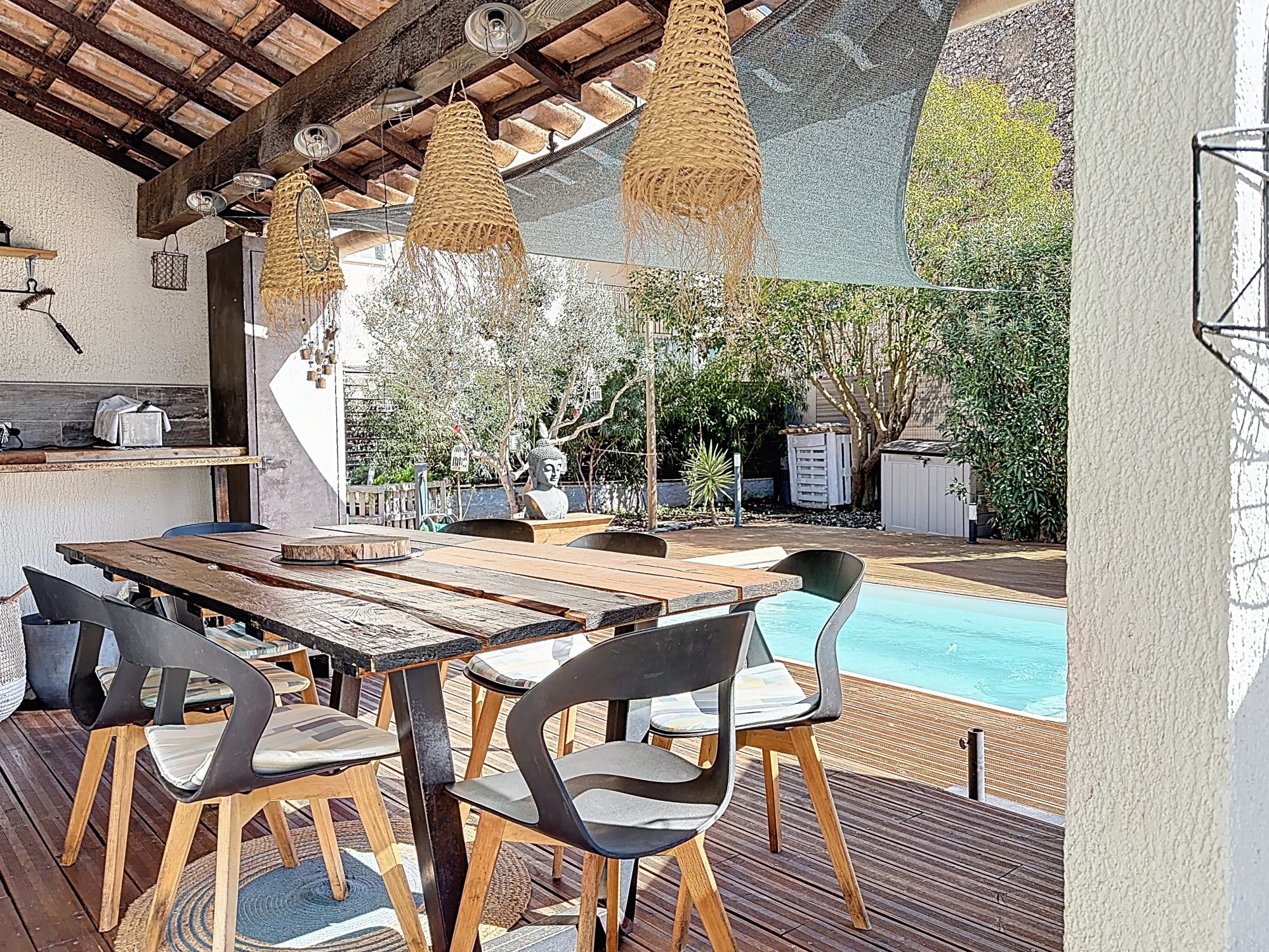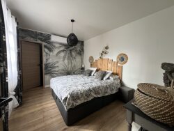Découvrez cette magnifique villa, entièrement meublée et rénovée en 2021. Avec ses 85 m² habitables et 90 m² au sol, cette propriété allie élégance et confort moderne. Séjour spacieux de baigné de lumière naturelle. Les trois chambres, dont une suite parentale, offrent des espaces de vie intimistes et chaleureux. La salle d'eau moderne et les WC indépendants. Profitez d'une terrasse de 9 m² couverte donnant sur la piscine, Le stationnement intérieur pour 4 véhicules garantit praticité. Cette villa, en excellent état, est équipée d'une cuisine américaine aménagée et équipée, d'un chauffage individuel . Ne manquez pas l'opportunité de vivre dans cette résidence de plain-pied, où chaque détail a été pensé pour votre confort et votre plaisir. À proximité, vous trouverez plusieurs commodités essentielles, dont des écoles, des supermarchés, et des transports en commun, à quelques minutes seulement.
